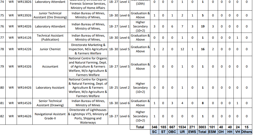 MTS (Non-Technical) (WR12326): कुल 25 पद, मुख्य रूप से OBC और UR श्रेणियों के लिए ।